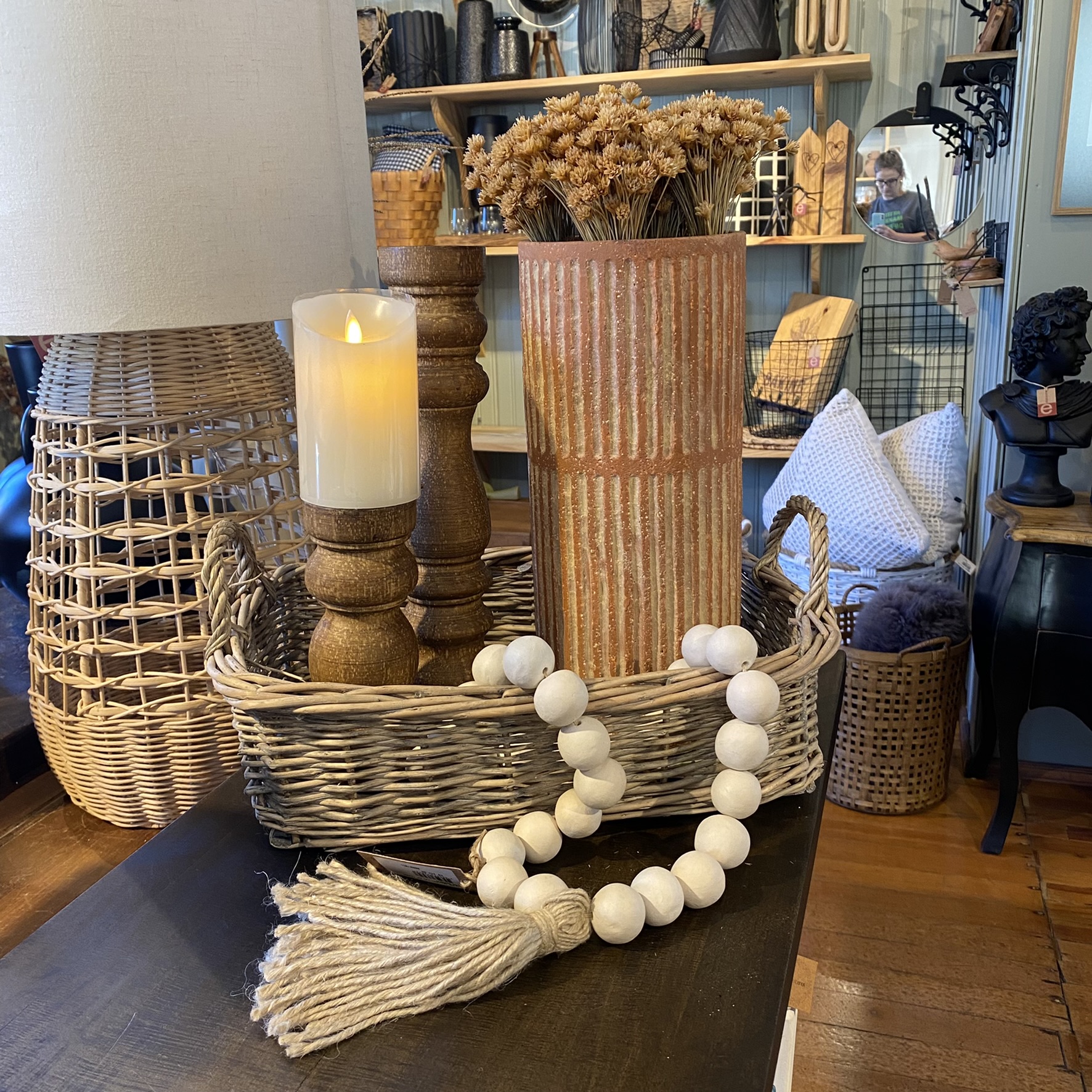 Cesta produzida em rattan, na cor cinza, para usar como bandeja ou cesta e compor cantinhos lindos.