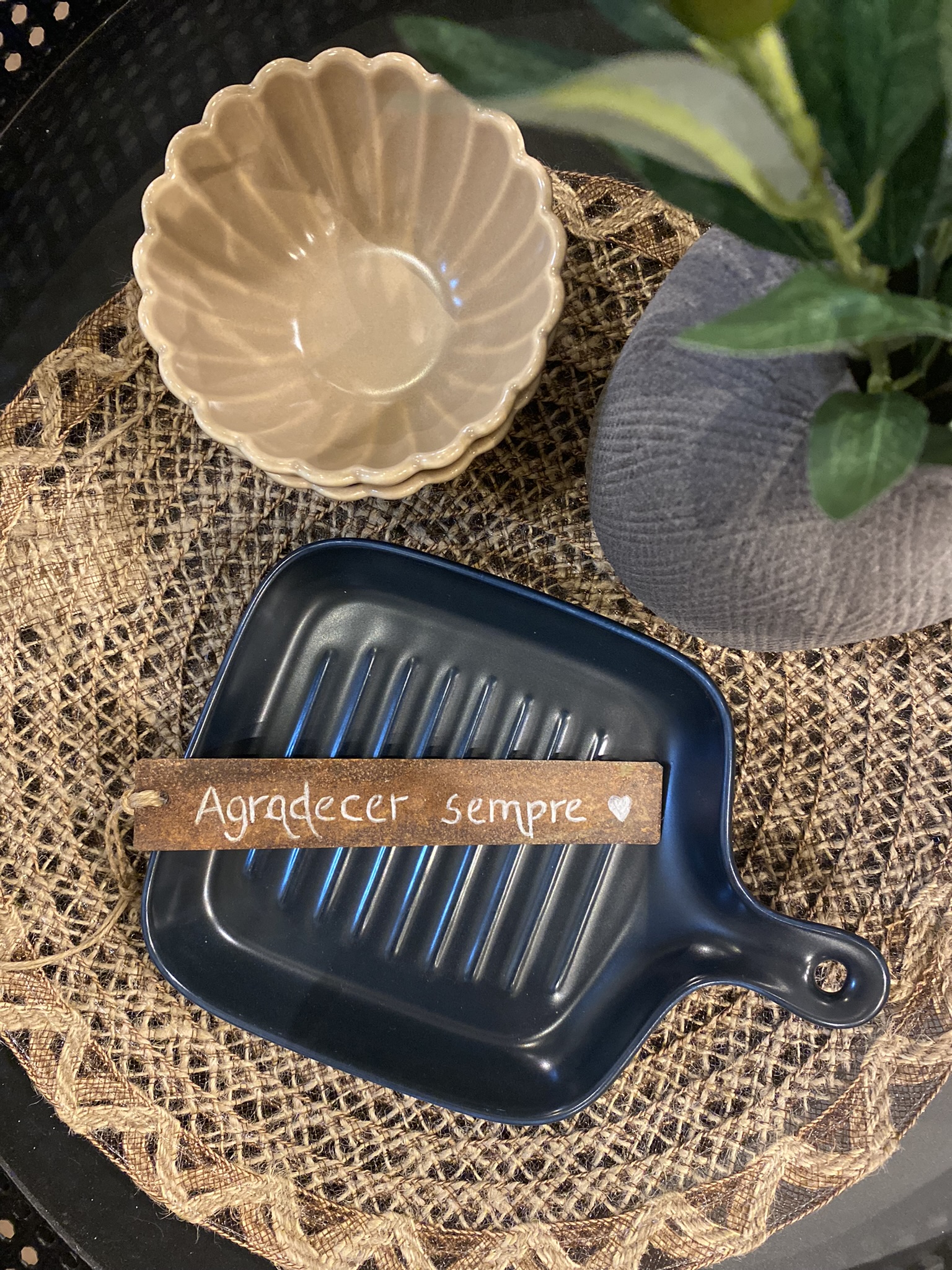 Possui dimensão de 24cm x 18cm e é produzida em porcelana.