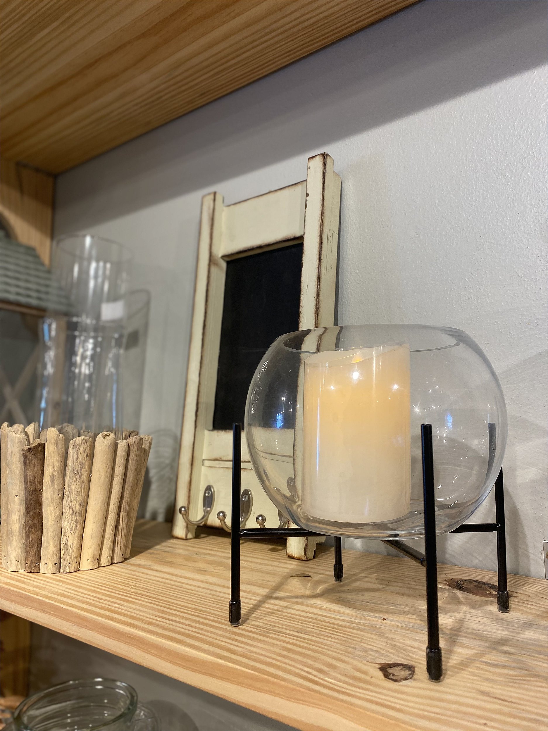 Vaso produzido em vidro, com suporte em metal! Perfeito para flores, ou velas!